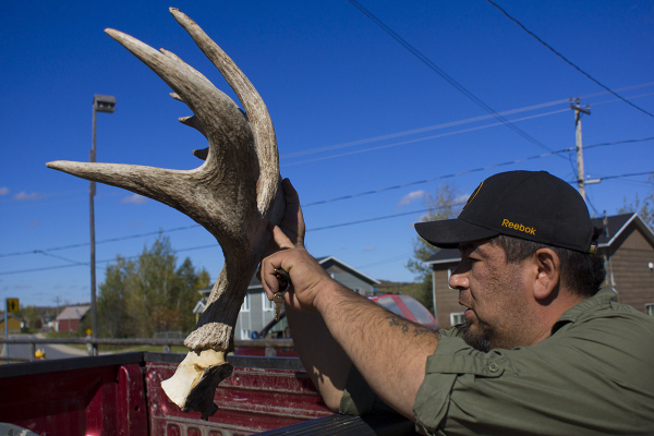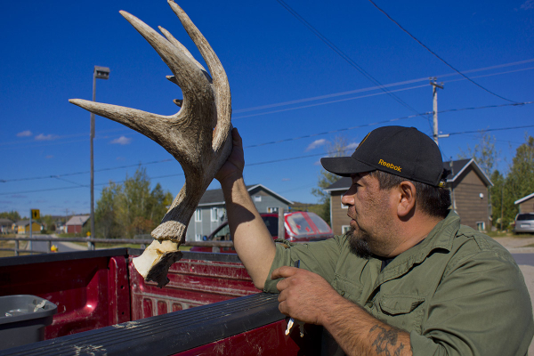 Hunting is an important activity in the community and is regulated by the seasons. Moose hunting is prohibited in the spring, but is practiced in the fall and winter. There are usually four hunters to track and kill the animal and about twenty people who follow on skidoo for the collection of the meat cut on site. All parts of the animal are shared with community members.
