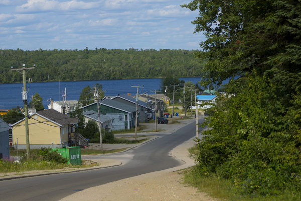 We finally arrive at our destination at the exit of a bend. The reserve covers eight hundred hectares with in its heart the lake Métabeskéga3where the swamps emerge staked out on the southern shore and its heights of several hundred wooden houses, with a small gas station, a supermarket, an inn and an arena. As on all reserves, the buildings lined up along the roadside are owned by the government and are exempt from housing taxes. Imposing pick-up trucks park in front of palisades faded by the rigors of winter, children play in the street and watch us go by.
