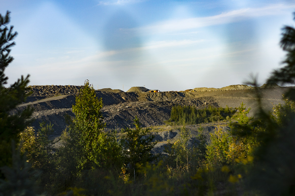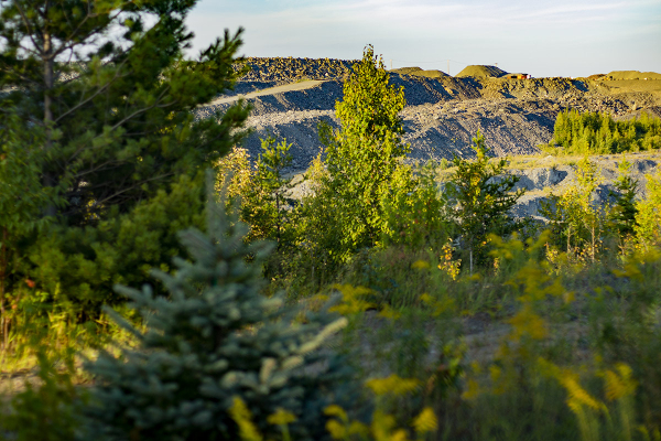The road unfolds like a long snake through forested landscapes that stretch as far as the eye can see on either side. The hours pass, hypnotic vision scandalized by the dull noise of the wind rushing through the windows. We finally reach the Vérendrye wildlife reserve. Cut with a knife, the track cuts through forests of spruce, birch and wild blueberry thickets like a vertical line. But behind the rows of conifers of the boreal forest lie the open pit mines and the devastation that surrounds them.